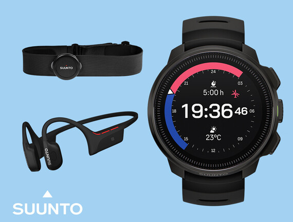 Bestaande uit een Suunto Ocean Adventure Watch en duikcomputer, evenals de Suunto Wing 2 Open ear-koptelefoon en hartslagband.